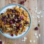 Spoon the oatmeal into bowls, drizzle individually with milk, then sprinkle with pepitas, a little extra brown sugar, and cranberries.