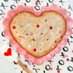 Press the cookie dough evenly into prepared pie dish. Bake for 20-25 minutes or until the cookie cake is set and lightly golden brown.