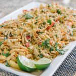 Top the salad with peanuts and then garnish with lime wedges if desired.
